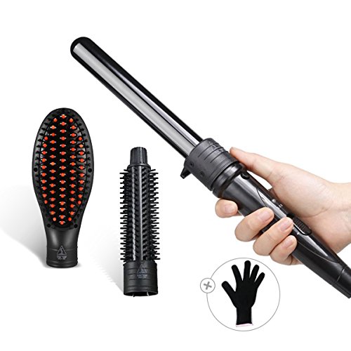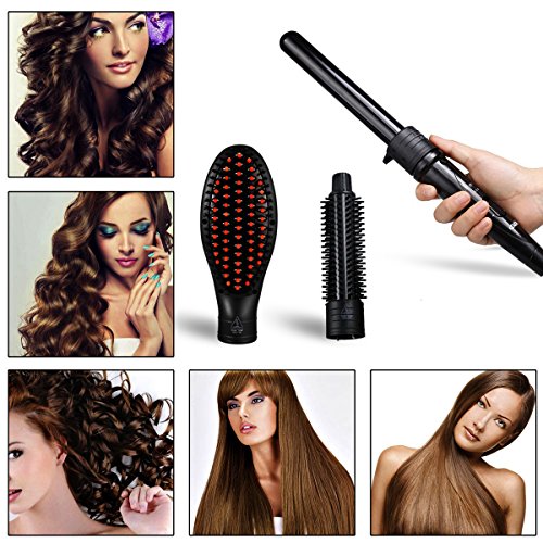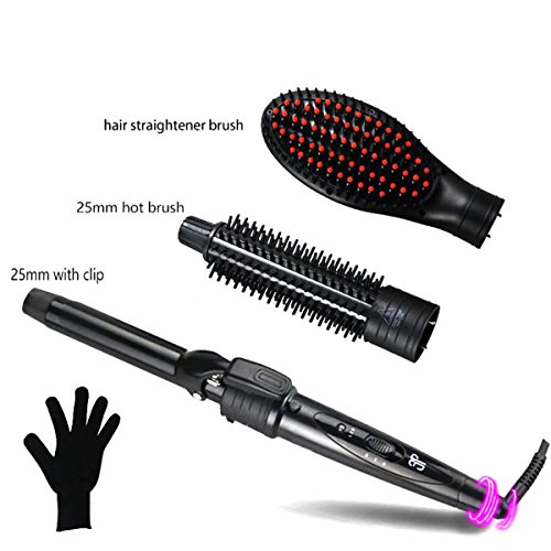 3 in 1 Interchangeable Hair Curling Iron Wand: 25MM hair curler + helmet + clip; 25MM hot brush, and hair straightener brush. Meets your different curling and straight hair style needs. Change your hair style from beachy waves to tight curls and straight hair style, enjoy the endless styling possibilities at home instead of hairdressing salon, save your money and precious time