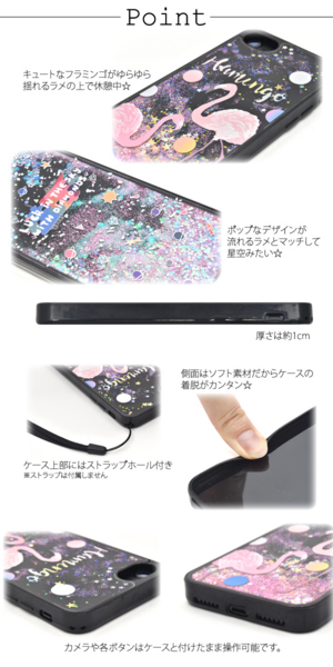 キュートなフラミンゴとポップなイラストをプリントしたかわいいケースです。