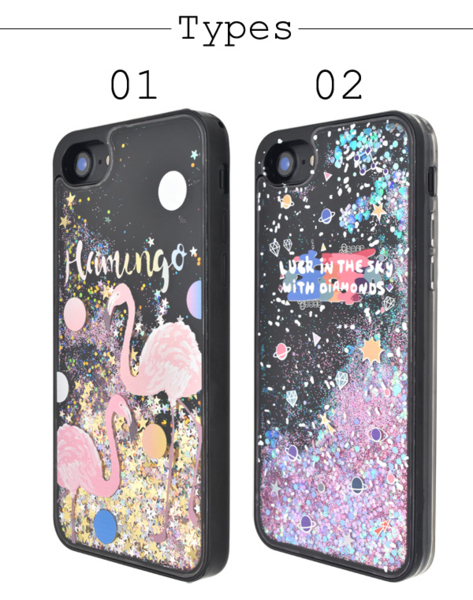 ラメが水の中でゆらゆら揺れるウォーターケースの上に、