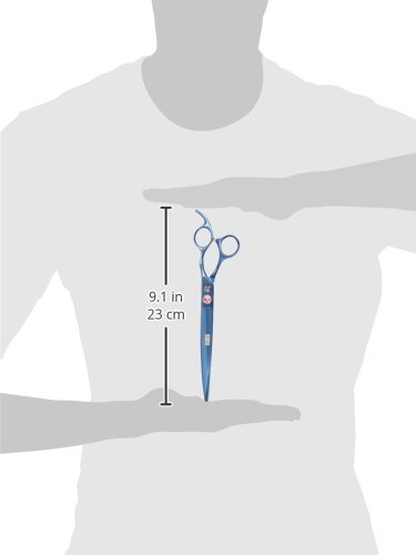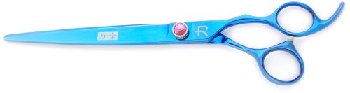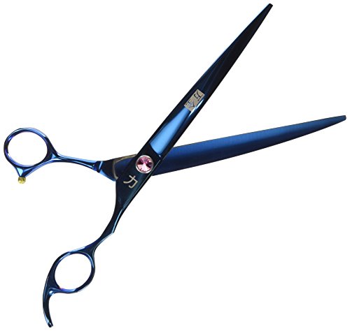 ShearsDirect Japanese 440C Curved Blue Titanium Cutting Shears with Pink Gem Stone Tension and ...