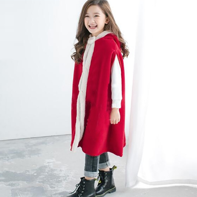 クリスマス 衣装 子供 マント ポンチョ フード付き 裏ボア 厚手 女の子 男の子 キッズ 子ども かわいい 服 コスプレ 仮装 変装 パーティーグッズ イベント用品 防寒 暖かい あったか レッド 赤 xmas Christmas cos