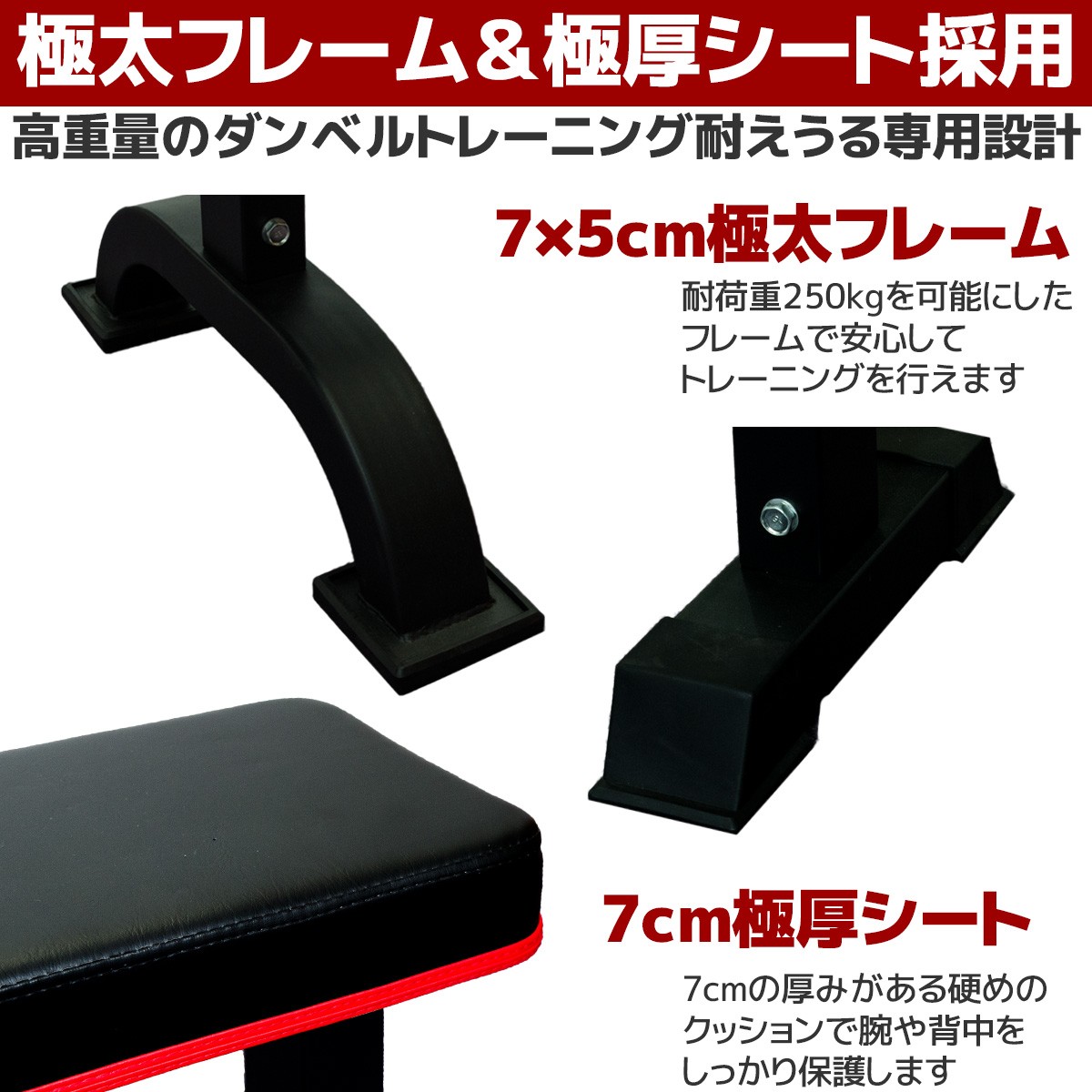 ■7×5cm極厚フレーム 耐荷重250kgを可能にしたフレームで安心してトレーニングが行えます