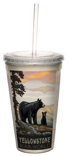 Tree-Free Greetings cc33271 Scenic Yellowstone National Park Bear World by Paul A. Lanquist Artful Traveler Double-Walled Cool Cup with Straw, 16-Ounce