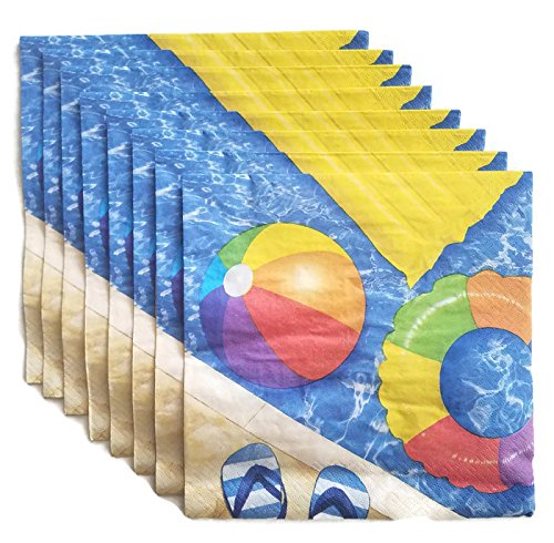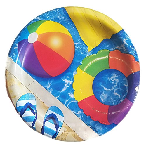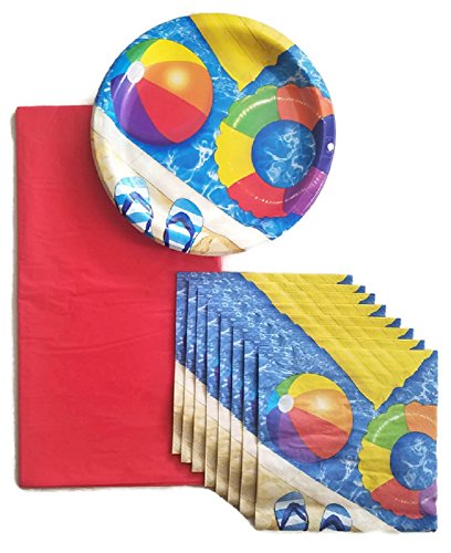 Beach Ball Pool Party Paper Plate, Napkin and Tablecloth Bundle Set of 3 Service for 8