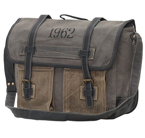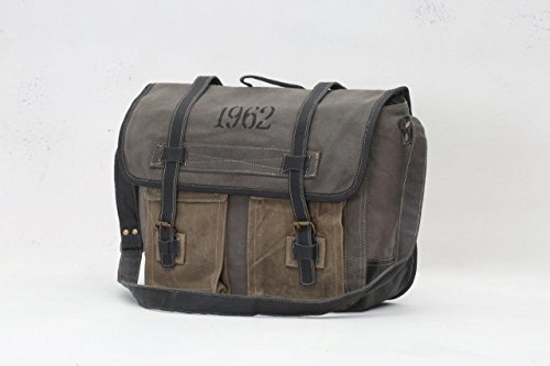 -. Brand : Myra Bag -. Color : Tan, Khaki, Brown -. Department : womens -. EAN : 0819699020240 -. Feature : Made from upcycled materials / Measures 15" W x 12" H x 5" D / 17" adjustable strap / Genuine leather accents / Each bag is truly original since they are made from upcycled materials -. ProductGroup : Apparel -. ProductTypeName : LAGE -. Size : One_Size -. Title : Myra Bags 1962 Upcycled Canvas Messenger Bag S-0749 -. UPC : 819699020240
