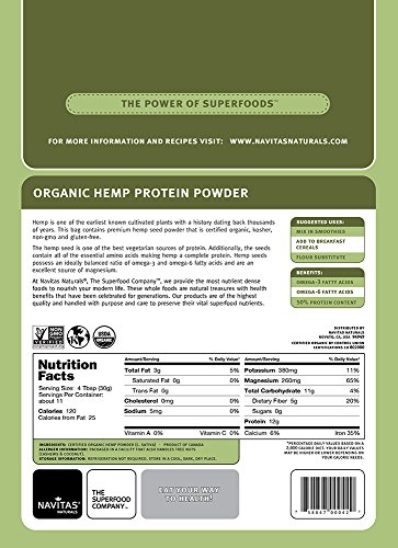 Navitas Naturals Hemp Powder is made from nutrient-dense hemp seed—one of the richest plant sources of protein, omega-fatty acids and fiber. Our organic hemp powder contains 50% protein, and it provides a variety of other key nutrients. This eco-friendly superfood has a nutty flavor and is easy to enjoy in smoothies and baked goods.Feature