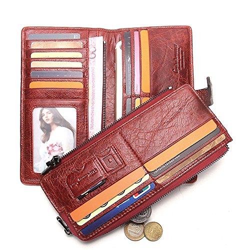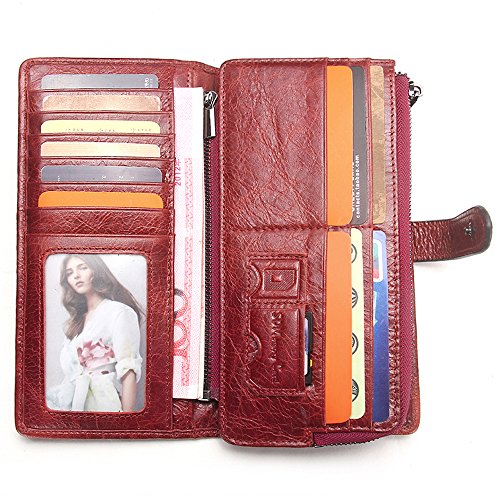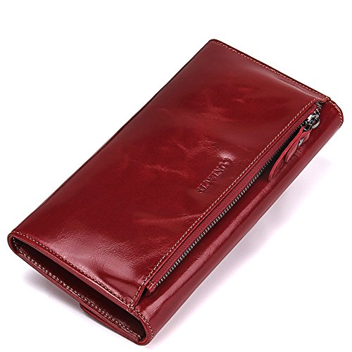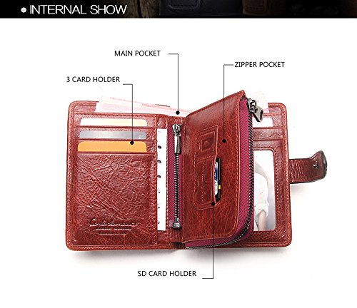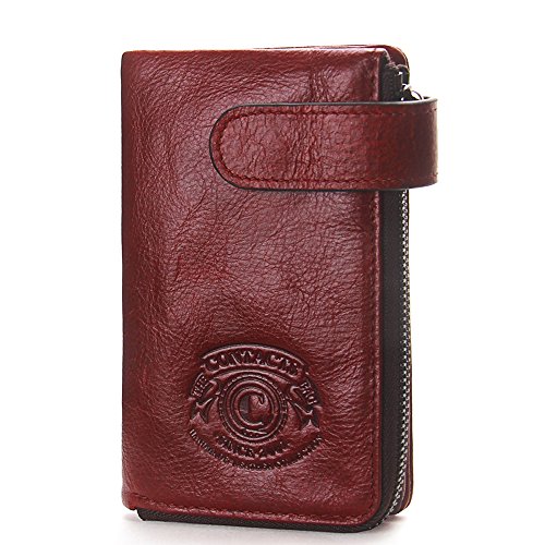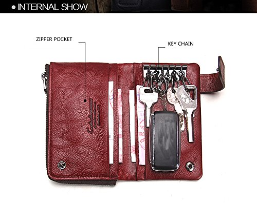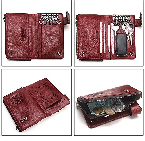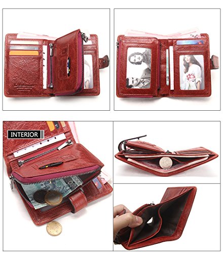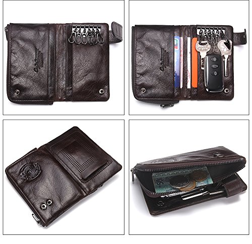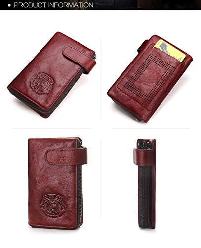 Women's Leather Wallet, 2 in 1 Keychain Coin Purse Vintage Cowhide Leather with Credit Card H...