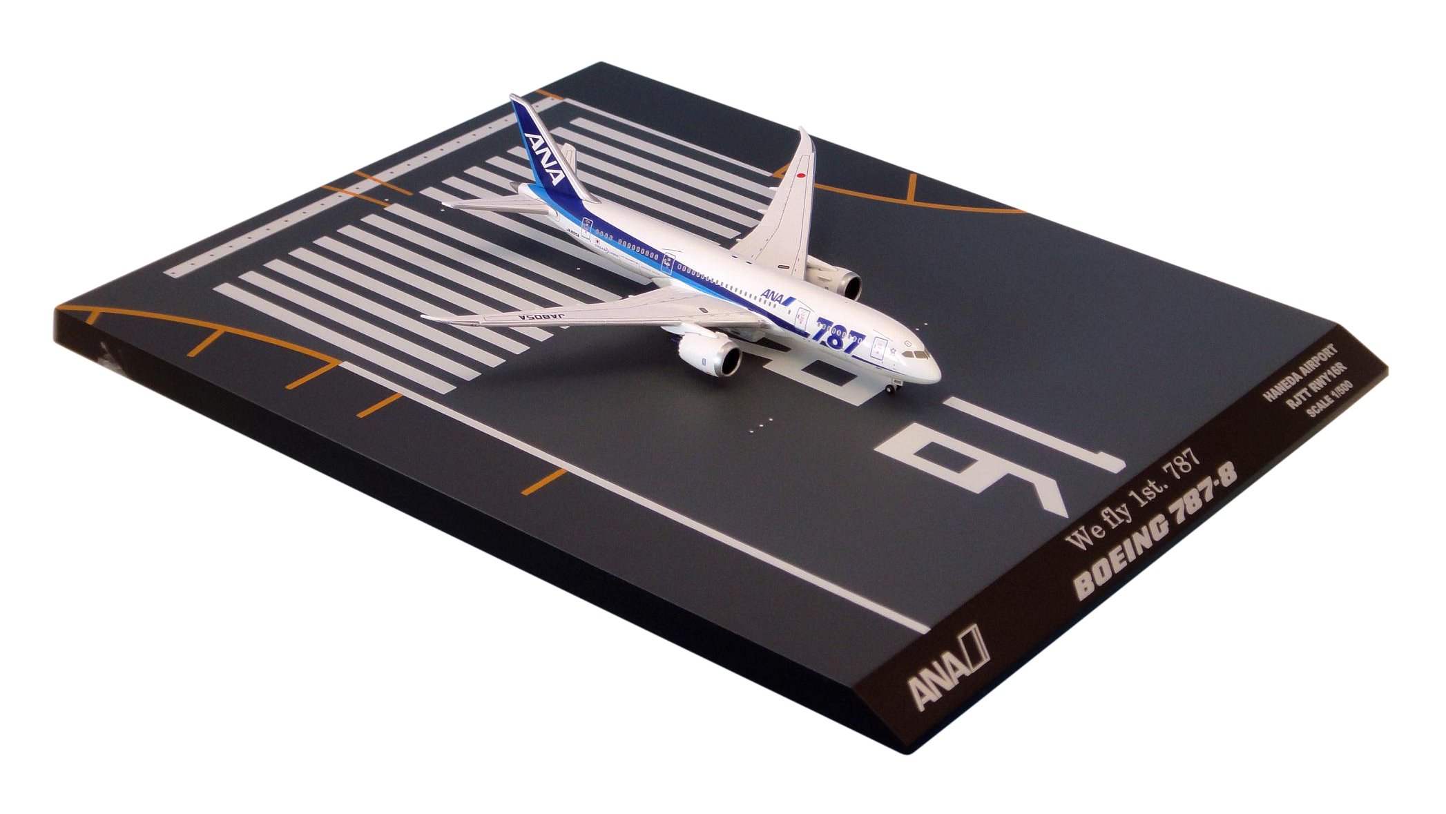 787 international line specification machine with logo, main wing ground position, display base included.