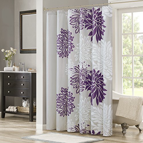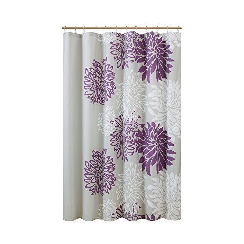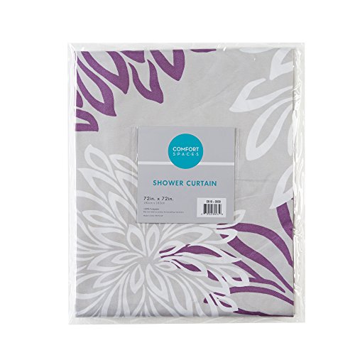 Comfort Spaces – Enya Shower Curtain – Purple, Grey – Floral Printed- 72x72 inches