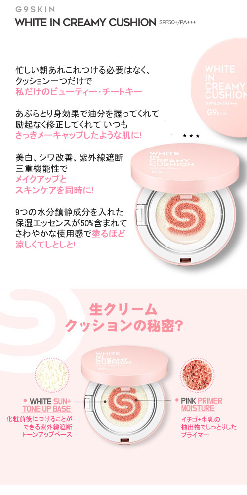 【韓国直送】 韓国コスメ <G9 SKIN> WHITE IN CREAMY CUSHION SPF50+/PA+++ (ジーナインスキン ホワイト イン 生クリーム クッション/15g)