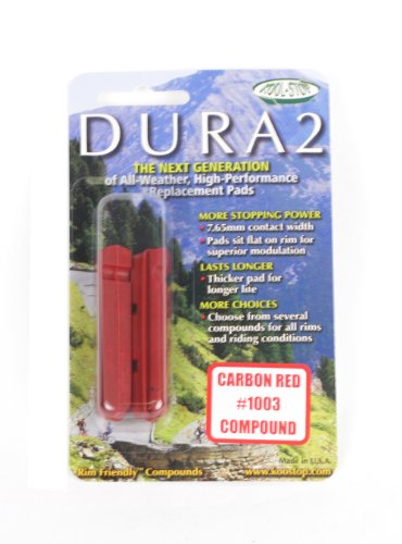The Dura2 insert is Kool-Stop's newly designed road pad. The pad is thicker than the standard Dura type for longer life, has a 7.65 mm contact width for narrow rims and cut outs for reduced weight. The Red 1003 features a proprietary red rubber compound for improved braking modulation and power on carbon rims.Feature