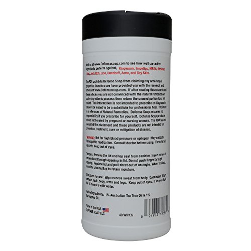 Defense Soap Body Wipes 40 Count (Pack of 2) - 100% Natural and...