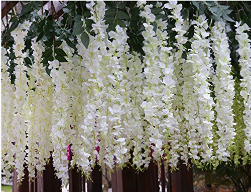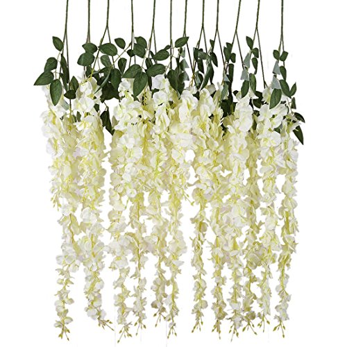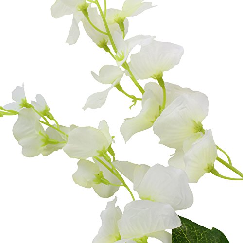 Duosuny 3.6 Feet Artificial Wisteria Vine Ratta Silk Hanging Flower Plant, 12 Pieces (White)