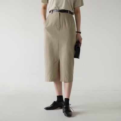 깔끔한 실루엣의 미디스커트입니다. 코튼소재로 이루어져있으며 허리 뒷밴딩으로 바디에 알맞게 핏되어져 더욱 편안하게 즐겨보기 좋을 아이템입니다. 앞중심의 슬릿 디테일로 활동성과 함께 더욱 멋스러웠던 아이템입니다. 또한 세트로 구성되어진 벨트까지 더해져 각각으로도, 세트로도 활용할 수 있어 다양한 스타일링을 도와드립니다. 미디길이로 내려와 부담없으며 베이지, 블랙 두가지 컬러로 준비되었습니다.