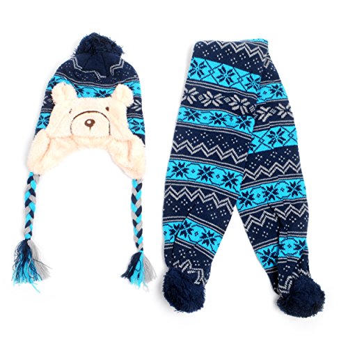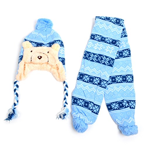 Binding : Apparel Product Description Kids will be ready in this classic patterned trapper hat and scarf when winter arrives! The trapper hat is topped with a pom-pom and comes with yarn braids; and is also lined for extra warmth. The matching scarf has a pom-pom at each end. With something to keep them cozy and warm, they won't be hibernating! 0