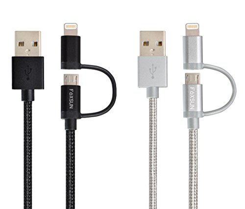 -. Title : Foxsun 2 in 1 Lightning and Micro USB Cable, 3.3FT/1M Nylon Braided Sync and Charging Cable Cord [Apple MFi Certified] for iPhone 7/7Plus/6s plus/6s, iPad /iPod, Samsung, HTC, and More