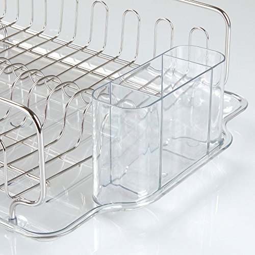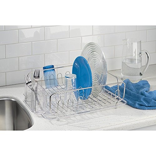 InterDesign Forma Kitchen Dish Drying Rack with Tray – Drainer for Drying Glasses, Silverware and Dishes, Clear/Stainless Steel