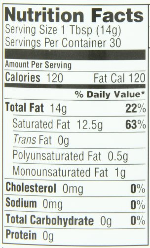 -. Feature : Made with 100% Certified, organic, cold pressed coconuts / Safety sealed to preserve and lock in flavor / Heavenly, Creamy taste of the tropics; Expeller Pressed; No Cholesterol / Free from pesticides, GMO's, Hexane; Not Refined, Deoderized, or Bleached / Rich in Medium Chain Fatty Acids (62%MCT); Lauric Acid 6657 mg per serving; Caprylic Acid 1043 mg per serving; CaP.R.Ic Acid 994 mg per serving