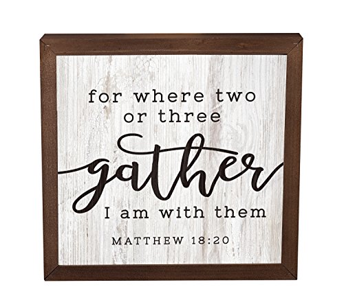 For Where Two Or Three Gather 11 x 11 Inch Solid Pine Wood Farmhouse Frame Wall Plaque