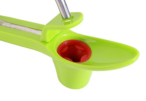 Studio : Haoren Publisher : Haoren Product Description Product Features: Cherry Pitter and Olive Pitter Kitchen Tool Pit Cherries / Olives without Mess, Protect your Clothes from Stains Professional Cherry Stone Core Seed Remover Using Instructions: 1. Press the handles and push the locking latch to unlock the pitter 2. Put the cherry on the silicone cup and start stoning the cherry 3. Collecting pitted cherry through the spoon-shaped holder 4. Pull the locking latch to lock the pitter after use Specifications: Color:Green Size: 7.5x 4.5in Weight: 3.7oz Package Included: 1 x Cheery Pitter