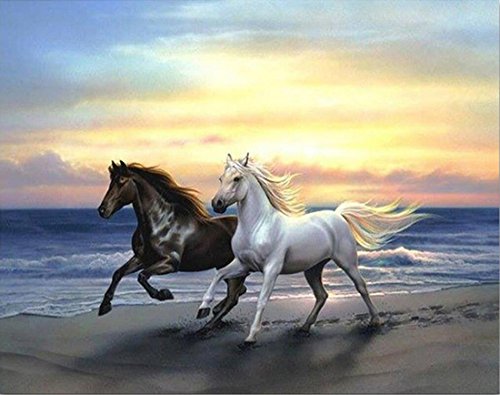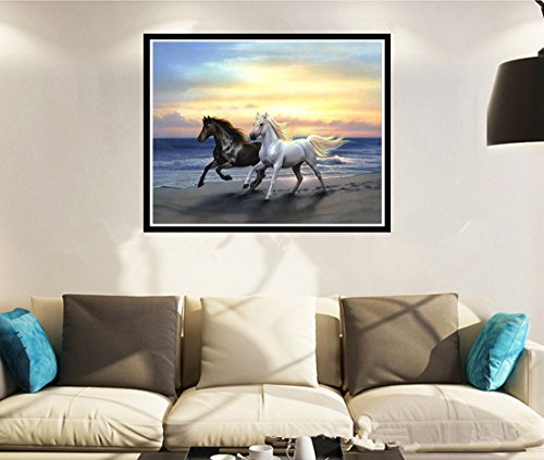 21secret 5D Diamond Diy Painting Full Drill Handmade Two Steed Horses Running by the Sea Cross Stitch Home Decor Embroidery Kit