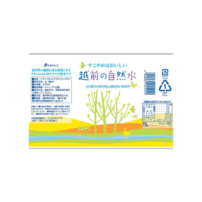 원본상품명: ハイピ?ス 越前の自然水 330ml×24本