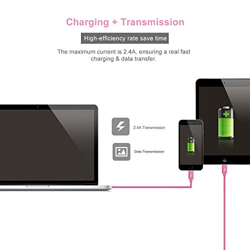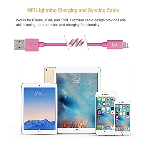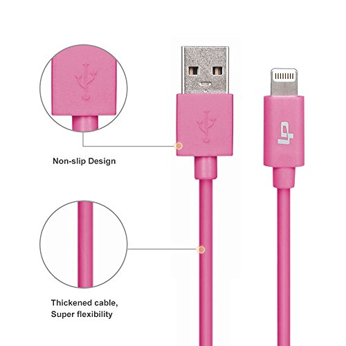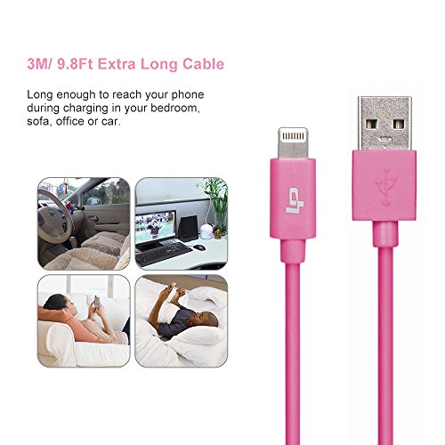 LP 3m/10ft Lightning Cable, Apple MFI Certified Connectors, Long Lightning to USB Cable Lightning Sync Charger Cable for iPhone 7/7 Plus/6s/Plus/6/5s, iPad Air 2/mini 4/mini 3, iPod Nano/Touch-Pink