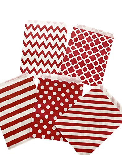 125 ct. Variety Pack Red Paper Favor Party Bags Treat Candy Cookie Bag Assorted
