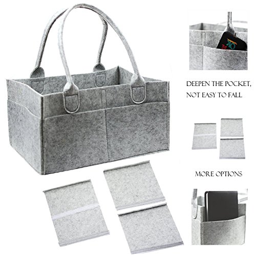 MATERIAL: The felt Cloth Can Be Used As a Heat Insulation Material and It Also Has Tight Tissue and Small Pores That Make It Easier To Resist Dust. Diaper Caddy Made With 100% Felt that Make Baby’ Life More Healthy and Easier. Reinforced seams allow the caddy to hold up to 40 pounds and can be machine washed.