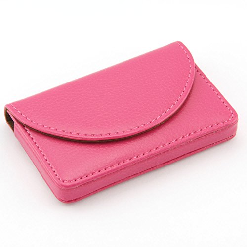 Partstock(TM) Women Leather Business Name Card Wallet / Holder 25 Cards 3.9L x 2.8W inches with Magnetic Shut For ladys.(Rose red)