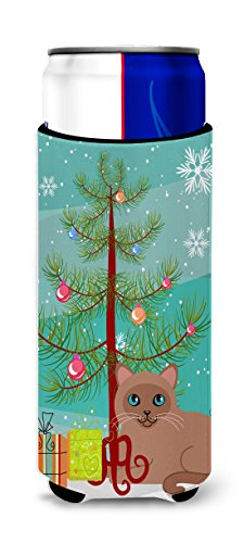 Caroline's Treasures Tonkinese Cat Merry Christmas Tree Michelob Ultra Hugger For Slim Cans, Slim Can, Multicolor