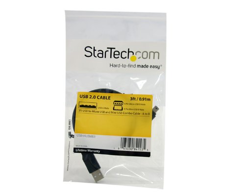 StarTech.com USBHAUBMB3 3 Feet USB to Micro USB and Mini USB Combo Cable - A to B