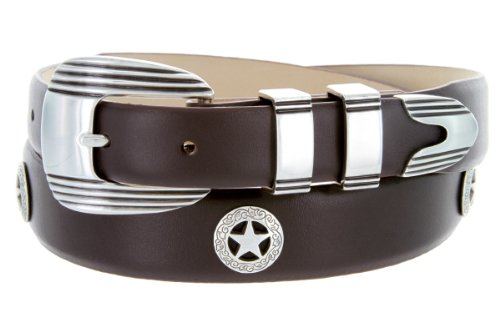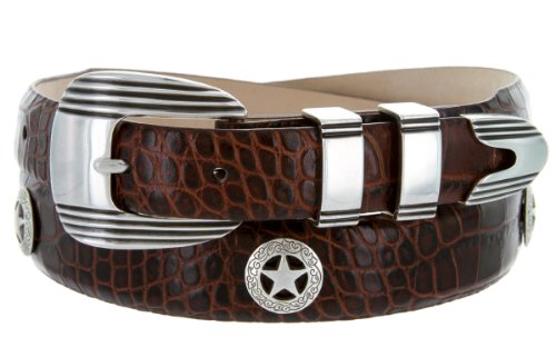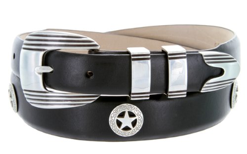 Golf Silver Star - Men's Italian Calfskin Designer Dress Belt with Western Conchos
