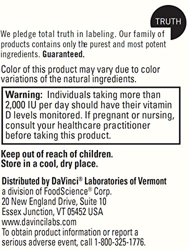 -. Feature : Vitamin D3 10000 IU Liquid is a dietary supplement to promote the bodys absorption of calcium and phosphorous, which are essential for the development and maintenance of healthy teeth and bones.* New research sests that it may support immune system function by supporting healthy cell growth.* / STRENGTH IN EXPERIENCE: For over 40 years, DaVinci Laboratories has been a leader in nutritional research, product development and innovation from its home state of Vermont. DaVinci Laboratories is a family-owned and managed company. Every day, DaVinci continues to set new standards for quality and product innovation so they can keep you as healthy and informed as possible. / STRENGTH IN NATURE: The raw materials used in DaVinci products are as natural as possible and are guaranteed to contain no artificial flavorings, preservatives, colors, sweeteners or other foreign agents unless otherwise stated on the label. / STRENGTH IN INTEGRITY: DaVinci Laboratories is one of the few companies to offer you truth in labeling. Pledging total truth in labeling means the DaVinci family of products contain only the purest and most potent ingredients. Guaranteed. / STRENGTH IN RESEARCH: DaVinci Laboratories' research focuses on the complex relationships that exist among nutrients and the latest advancements in nutritional therapies to develop and produce some of the most significant products available. The Research and Development Department is under the direction of a Ph.D. Nutritional Biochemist.