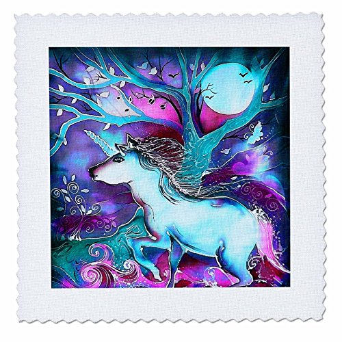 3dRose qs_116229_4 Colorful Mystic Unicorn Under a Blue Moon Fantasy Digital Art-Quilt Square, 12 by 12-Inch