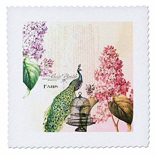 3dRose qs_110312_5 Paris Peacock with Hydrangea Flowers-Quilt Square, 14 by 14-Inch