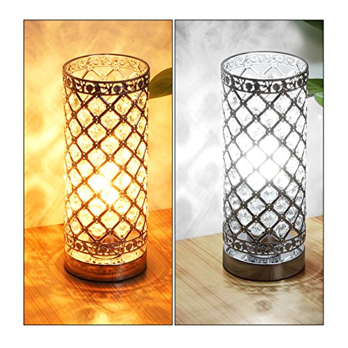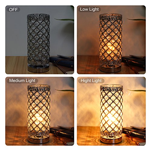 Crystal Table Lamp Touch Control Dimmable Accent Desk Lamp Bedside Modern Table Light with Sliver Lamp Shade Night Light Fixture for Living Room Bedroom Kitchen