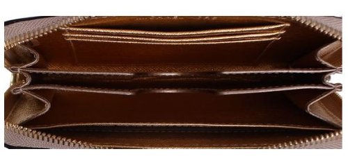 - Feature : Metallic leather with signature perforated flower overlay / 6.5"(L) x 3.5"(H) x 1"(W) / Zip-around closure / Golden hardware / Interior features 3 card slots, open slip pocket and center smart phone pocket