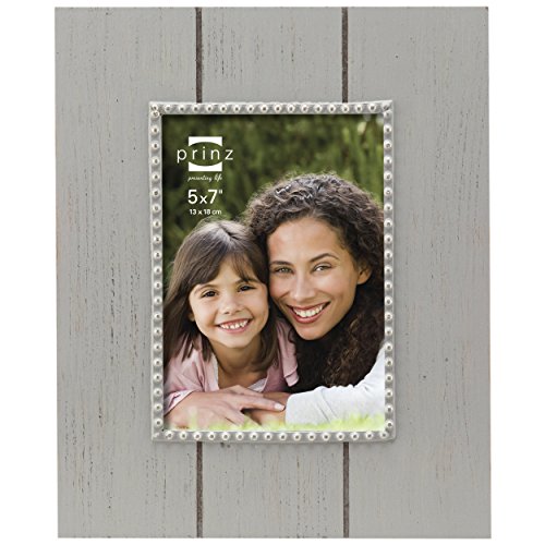 Prinz Parson Antique Gray Plank Wood Frame with Antique Silver Bead Border, 5 by 7-Inch