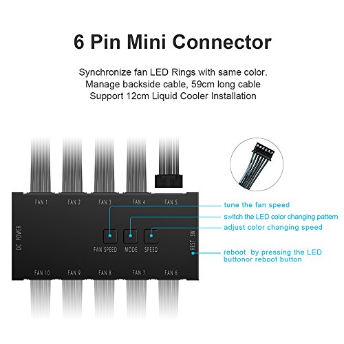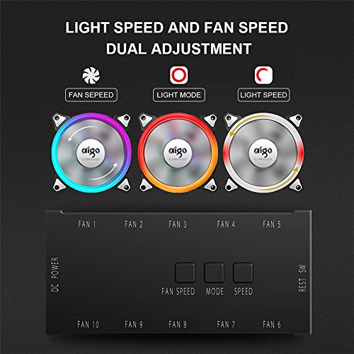 - The RGB LEDS built into the fan frame offers a vivid light effect to you. You can switch it to the modes and the effect speed you like via the 3 button controller