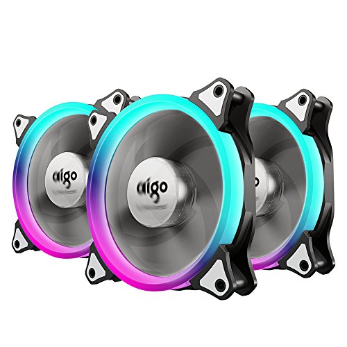 Case Fan, AIGO 3-Pack RGB LED 120mm High Airflow Adjustable colorful Quiet Edition RGB CPU Coolers Radiator with controller