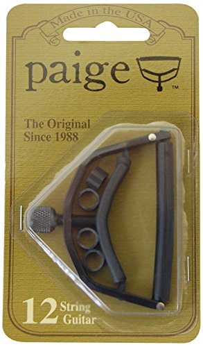 Studio : Paige Publisher : Paige Product Description A sleekly designed, controlled tension capo for 12 string and 6 string low profile / wider neck guitars. Position the 4 clear tubes over the smallest of the E, A, D, and G strings to eliminate string buzz. For 6-string, remove the 4 clear tubes. 0