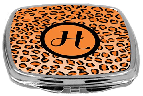 Rikki Knight Compact Mirror, Letter h Initial Orange Leopard Print