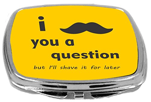 Rikki Knight Compact Mirror, I Mustache You a Question Black On Yellow