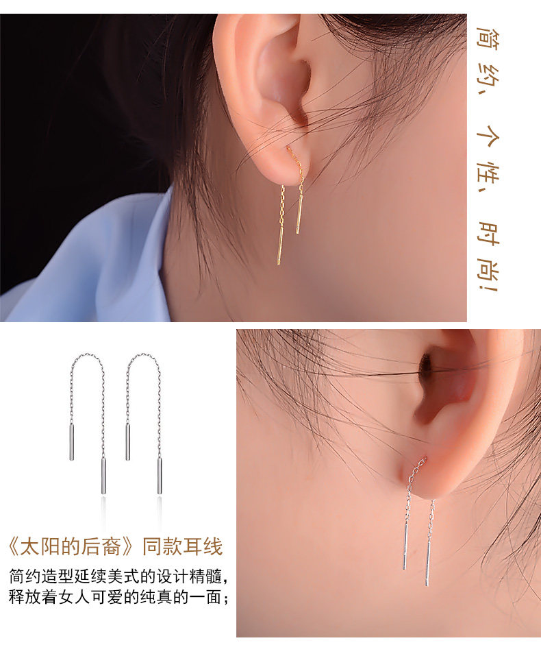 925银耳饰太阳的后裔同款耳线长款女流苏耳环宋慧日韩乔气质韩国