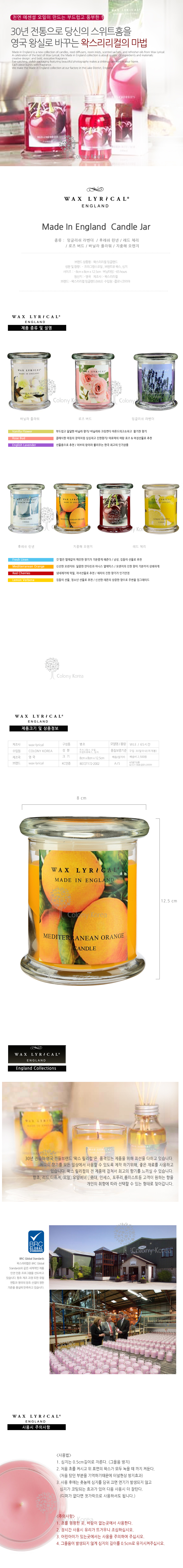 양키캔들과 더불어 최고의 품질로 인정 받는 Colony(콜로니)사의 고퀄리티 잉글랜드 자캔들 입니다.