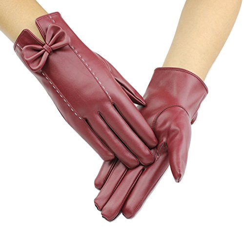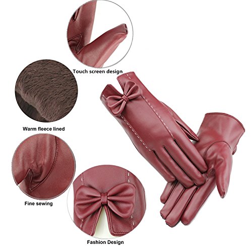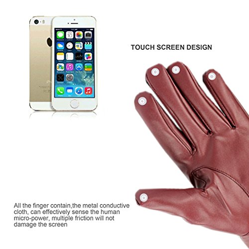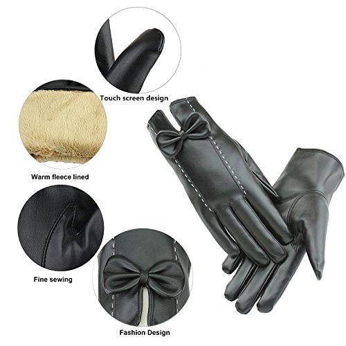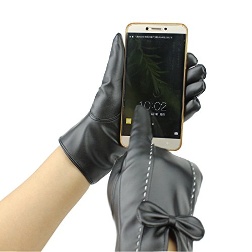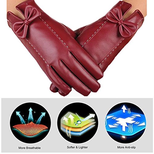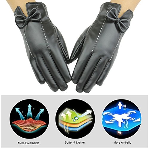 Product Feature - Women PU leather gloves. - The leather is very soft and flexible, the luxurious super soft plush lining is comfortable and warm, without being bulky. - Touchscreen technology allows you to better operate touchscreen devices. - The gloves are beautifully crafted and as long as your hands are warm when you put them on your hands and finger tips stay warm. - The leather gloves which is durable and breathable, has excellent flexibility and abrasion resistance. - It won't stain easily and it is easy to clean. - Dressing up, out for a walk or driving the car, where ever your day takes you these are the smart-looking gloves.