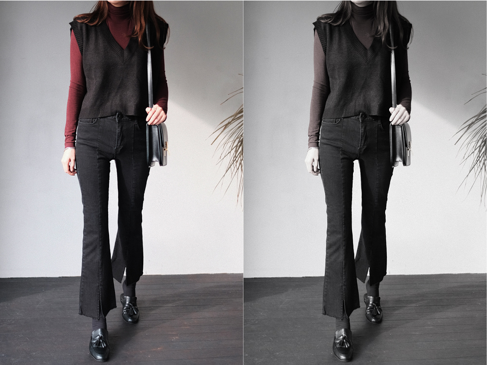 셔츠나 원피스 모델분처럼 팬츠에도 레이어드해 착용해주시면 분위기있는 룩을 완성해주어요