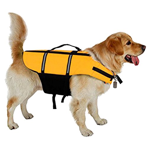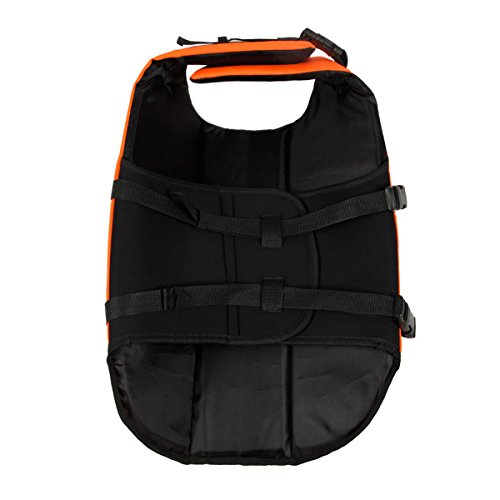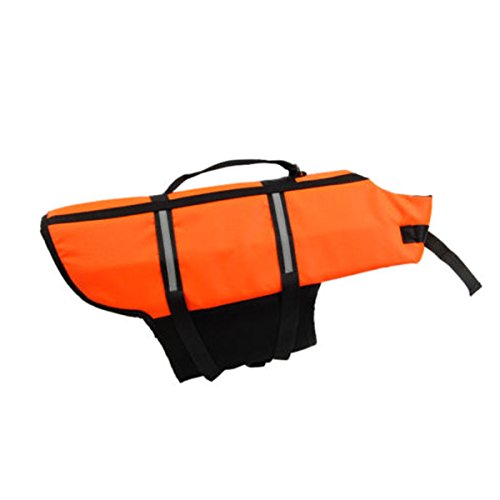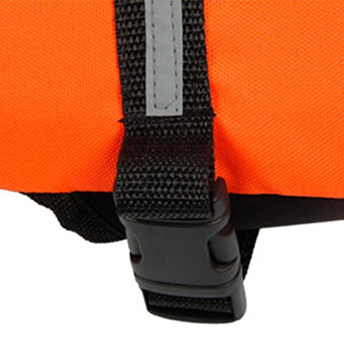-. Feature : Color: Orange, Material: Premium oxford cloth, nylon fabric, mesh fabric, good buoyancy foam. / Back Length: 9.8"/25cm, Neck: 11.8"-14.9"/30-38cm, Chest Girth: 16.1"-18.8"/41-48cm / The jacket adopts adjustable nylon straps with quick-release buckles and velcro closure to fasten your pet that keep him in safe / High Quality: it is durable, lightweight and soft. Simple design makes it easy to put on and take off. Broad sponge padded chest plate for extra protection and comfort. / Functions: Provides protection and visibility for dogs on the water.Orange color, easy to spot wherever your dog goes