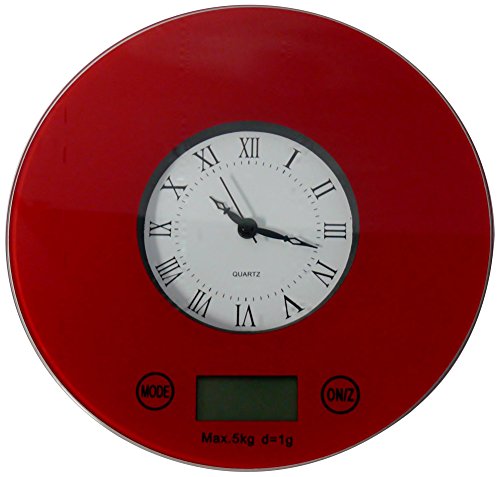 IFRESH Digital Kitchen Scale with Quartz Clock, Red